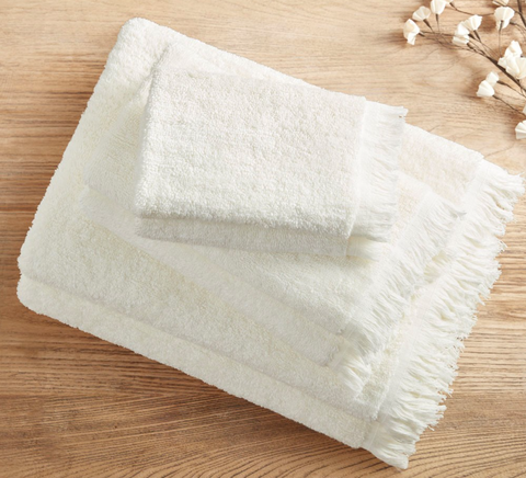 Made from 100% terry cotton, this towel set features an ink dyed slub pattern that creates beautiful texture and dimension; while a self-fringe hem detailing, provides a unique craftsmanship touch for an artisan and global inspired design. With a 630gsm rich quality weight, this cotton towel set offers a super soft, plush feel that is also highly absorbent to keep you warm and dry. Machine washable for easy care;