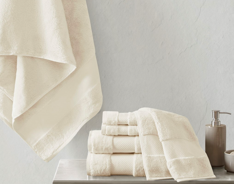 Elevate your bathroom decor with the luxuriously soft and indulgent comfort of our Madison Park Turkish cotton bath towel set. MADE IN TURKEY. These oversized cotton towels are made from smooth low-twist yarns with 600gsm weight, creating a soft and plush hand feel that is also highly absorbent for the ultimate in luxury. Each towel features a dobby border and end hem to add a classic, yet refined touch to the design; while also Made in Green by Oeko-Tex Certified for superior quality towel.