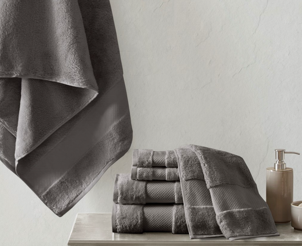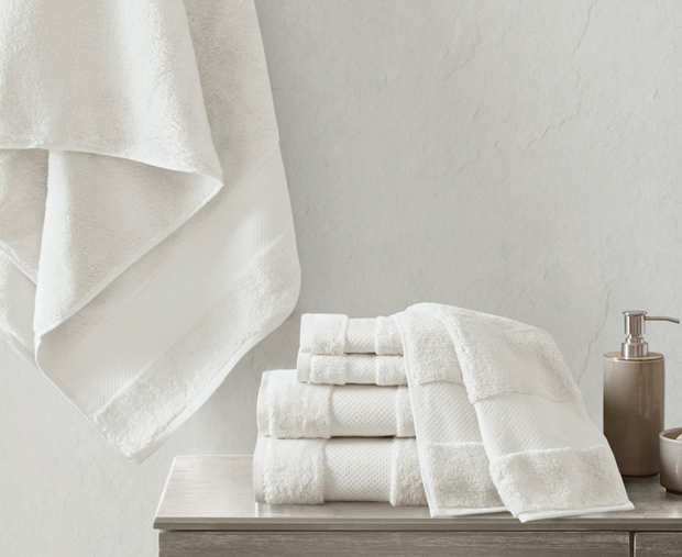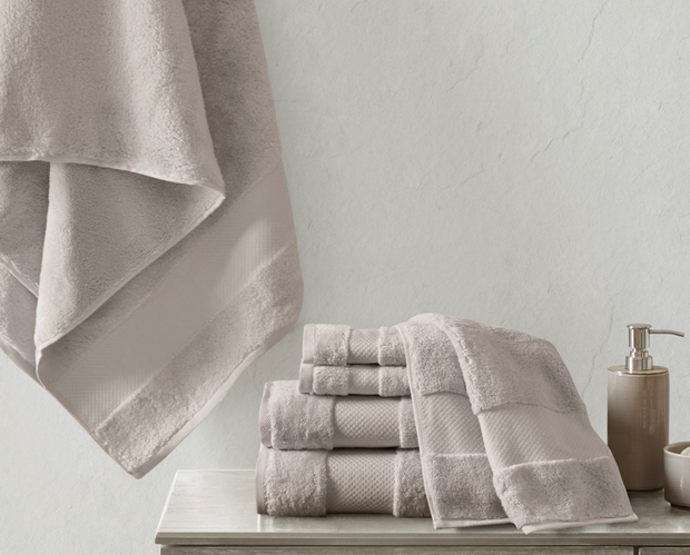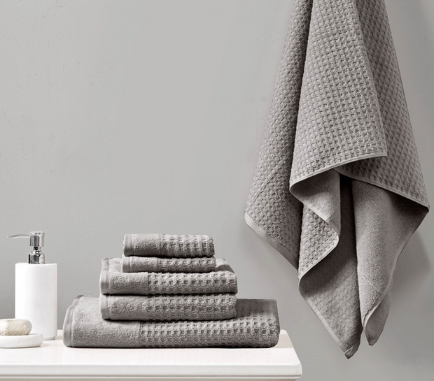 This 100% cotton towel set features an all-over waffle combed jacquard design for a rich texture, while the velour dobby cuff adds a stylish contrast touch for an updated look and feel. The 600gsm weight makes each towel soft yet also lightweight and quick-drying, so it does not get weighed down from moisture throughout the day. These towels are also finished with a SILVADUR™ antimicrobial treatment providing built in freshness protection, inhibiting growth of odor causing bacteria, and keeping linen newer, longer. Active for multiple washes, this treatment delivers long-lasting durable odor protection performance. In addition, this towel set is also Made in Green by OEKO-TEX certified, meaning they do not include any harmful substances or chemicals while also using sustainable processes and socially responsible working conditions, for the best in quality comfort and wellness.