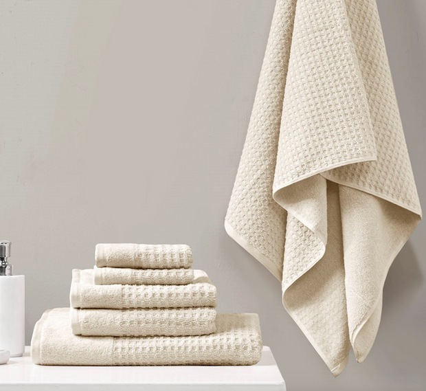 Waffle Cotton Jacquard Antimicrobial Towel, White, 3 Sizes